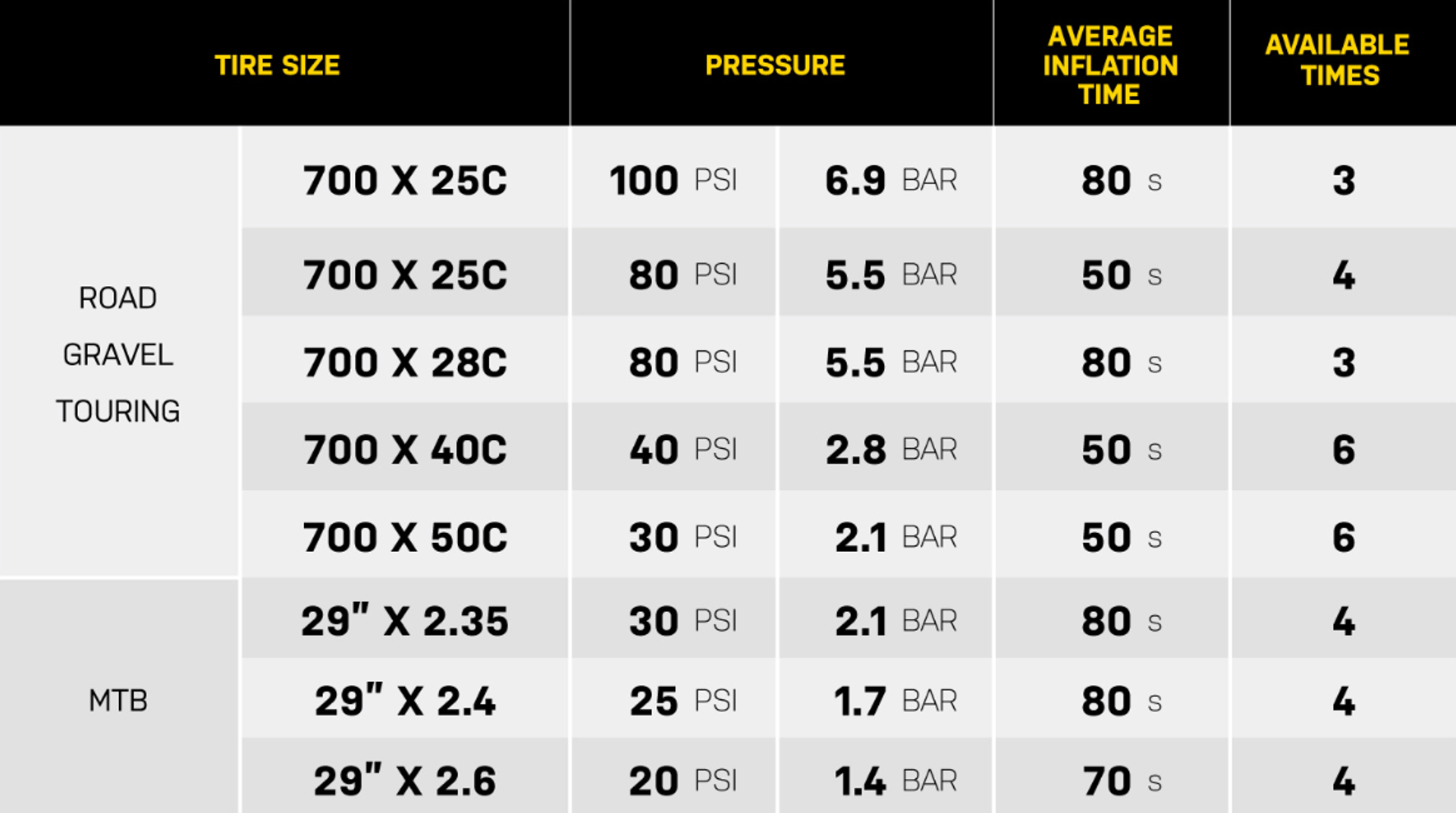• QUICK INFLATION: 80psi in 50seconds