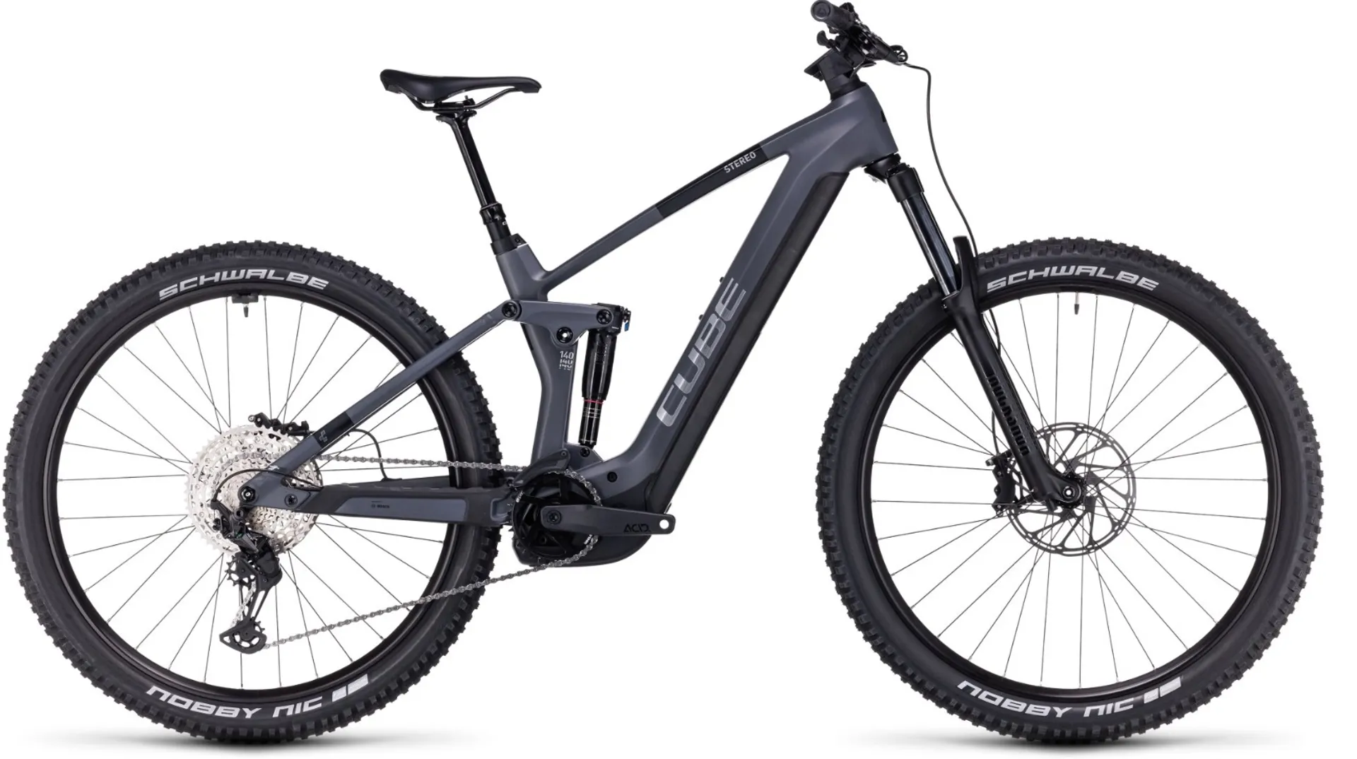 Cube Stereo Hybrid 140 HPC Race 750 Electric Mountain Bike Grey/Chrome