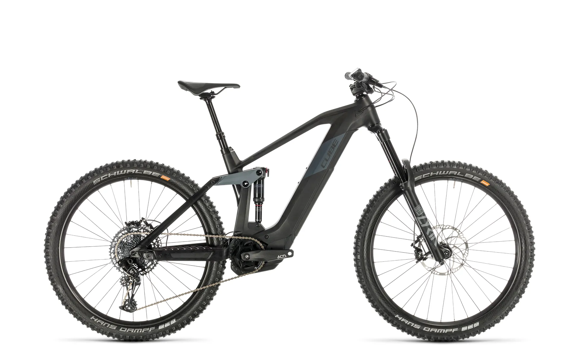 The all-new Stereo Hybrid 160 HPC SL - a bike that redefines what's possible. Building a world-beating enduro bike isn't easy. Building one that combines genuine enduro performance with the ease of use of Bosch's amazing drive system is even harder. Luckily, CUBE's years of experience at the Enduro World Series, as well as building class-leading Bosch e-bikes, helps make the job a tiny bit easier. Our engineering team was able to draw on their extensive hybrid, carbon and full suspension design experience to create something remarkable: a 160mm travel bike with carbon main frame, progressive suspension kinematics and an aggressive geometry designed specifically for 170mm forks and tough enduro courses, plus seamless Bosch power. The new CUBE Modular Battery System encloses the Bosch power unit in the down tube, hidden behind a shock-, moisture- and dust-proof cover that features a push button for access, as well as a hidden lock. It's not just neat, it also enables us to increase the battery's capacity for even greater range out in the mountains. Larger bearings, hidden cable routing, chain guide compatibility and space for a bottle cage mount are just some of the details that set this bike apart. As for the spec, it would have been easy to cut a few corners... but that's not the CUBE way. So you'll find a RockShox Deluxe Select+ shock and matching RockShox Lyrik Select fork up front, working together to deliver up to 170mm of boulder-swallowing travel. A remote dropper post opens up new line choices, while Sram's NX Eagle 12-speed transmission ensures you can ride every bit of the link stages. And Magura MT Fifty hydraulic disc brakes, combined with big-volume and super-grippy Schwalbe Hans Dampf tyres, give you all the power you need to control your speed on the timed stages. Combined with Bosch's fourth-generation drive unit, it's all the excuse you need to head out into the mountains and smash out some new personal bests. Are you ready? Because the Stereo Hybrid 160 HPC SL definitely is.