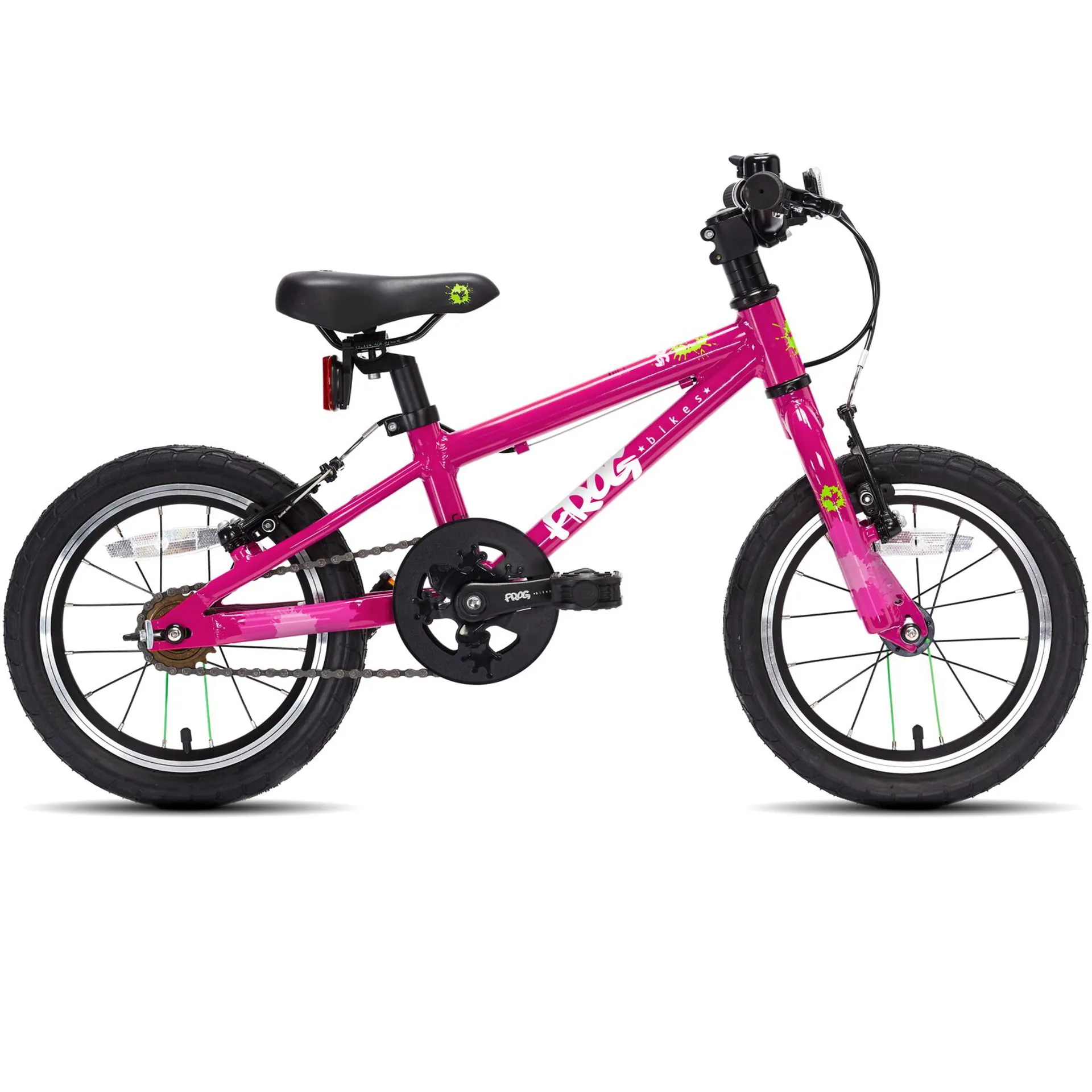 • Saddle: Frog Bikes child-specific saddle (small), steel rails