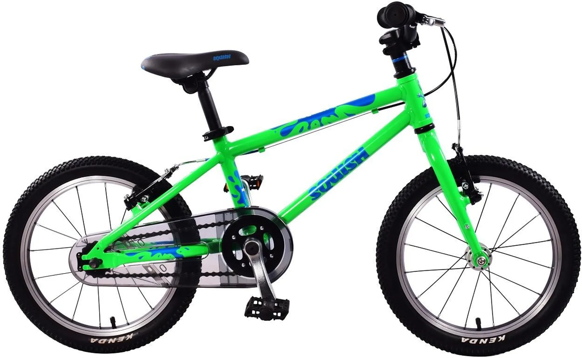 The Squish 16-inch wheel kids bike is the definition of simple fun on two wheels! Short cranks, junior-specific stem, grips, brake levers, and grippy little pedals all with just a weight of 6.3kg means your lil'un can jump on and pedal away.
