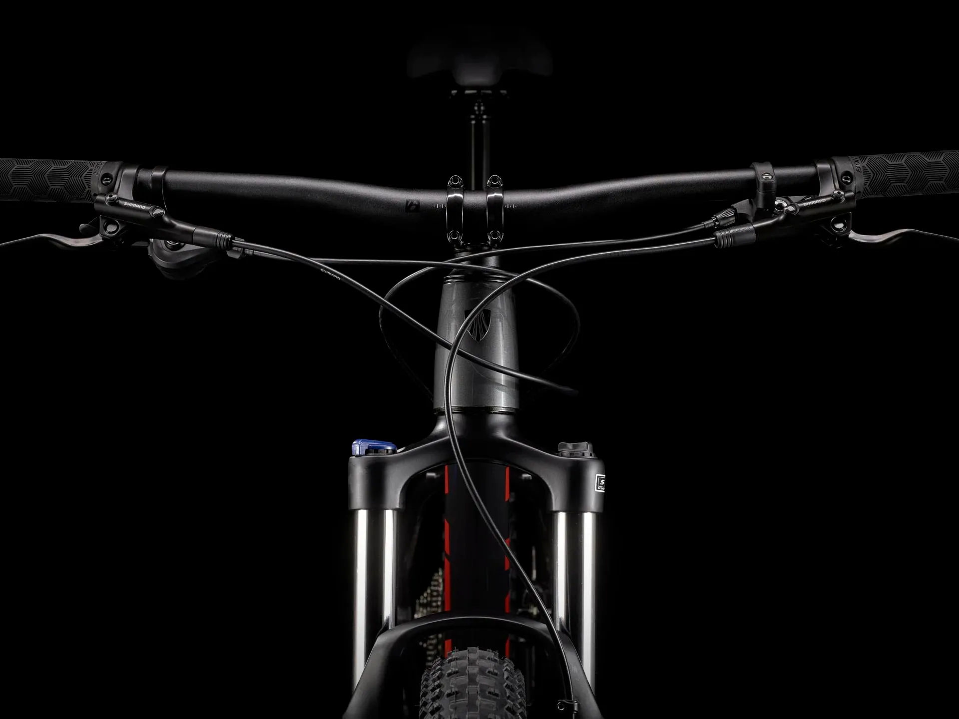 • The dropper post lets you lower your saddle on the fly so it's out of the way on descents
