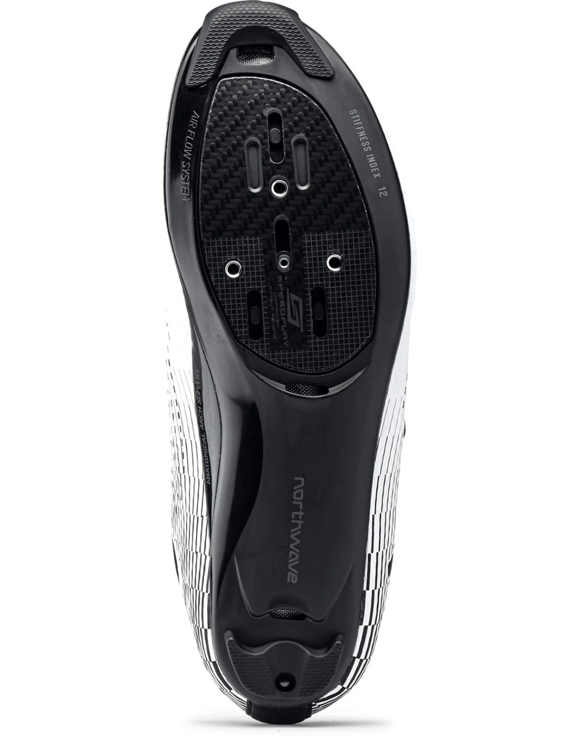 The Northwave Storm 2 Carbonfeatures Morph Carbon 12 AAS sole with a full-carbon insert in the pedal area with a stiffness index of 12.0.