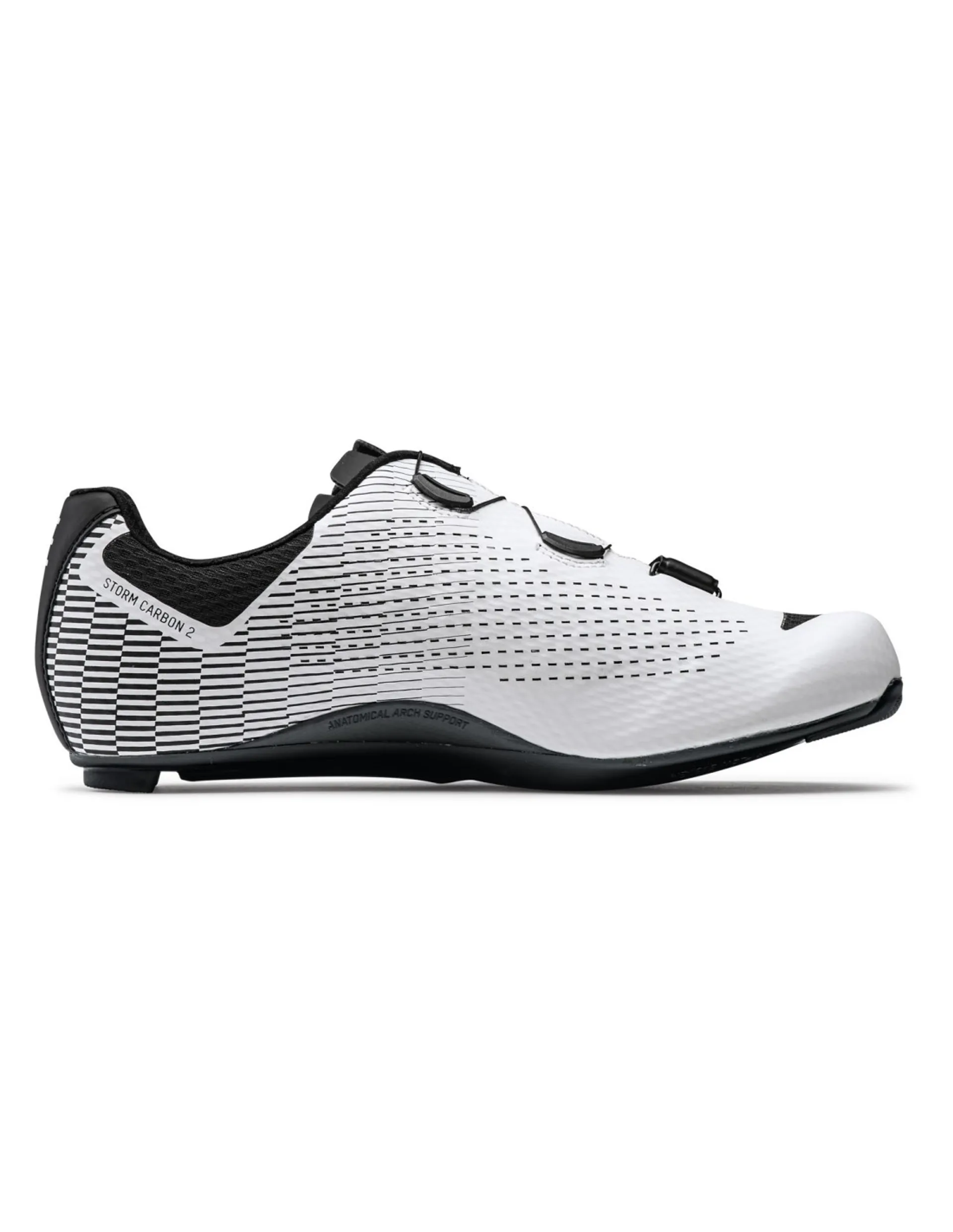 The Northwave Storm 2 Carbonfeatures Morph Carbon 12 AAS sole with a full-carbon insert in the pedal area with a stiffness index of 12.0. The exclusive Anatomical Arch Support made of TPU, allows the shoe to perfectly shape on the bow arch, making it the ideal sole for any foot.